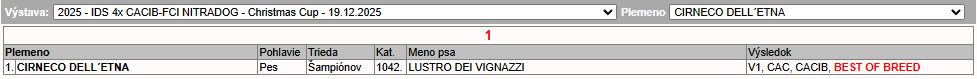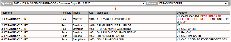 4x CACIB Nitra / 2.den – 19.12.2025 Publikováno 19/12/202522/12/2025 , autor: admin Rozhodčí pro plemeno / Breed Judge: Frnčová Lenka, CZRozhodčí pro Junior skupinu / Junior group Judge: Frnčo Ladislav, CZ
