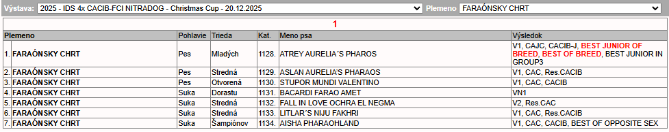 4x CACIB Nitra / 3.den – 20.12.2025 Publikováno 20/12/202522/12/2025 , autor: admin Rozhodčí pro plemeno i Junior skupinu / Breed and Junior Group judge: Kubiček Ante, BA